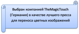 в номинации SGIA’s Продукт Года «За инновационные технологии» и «Золотая лента» в категории «Термоперенос на текстиль» ![]() |